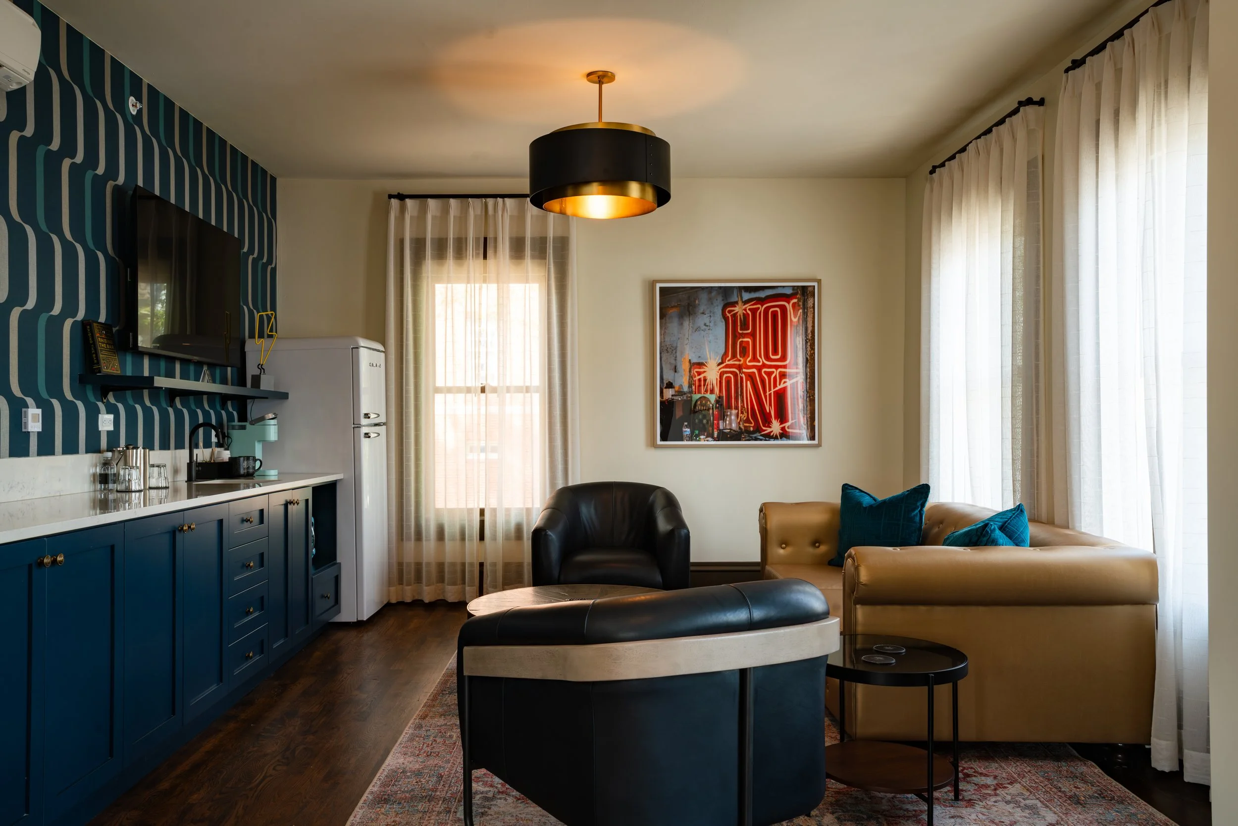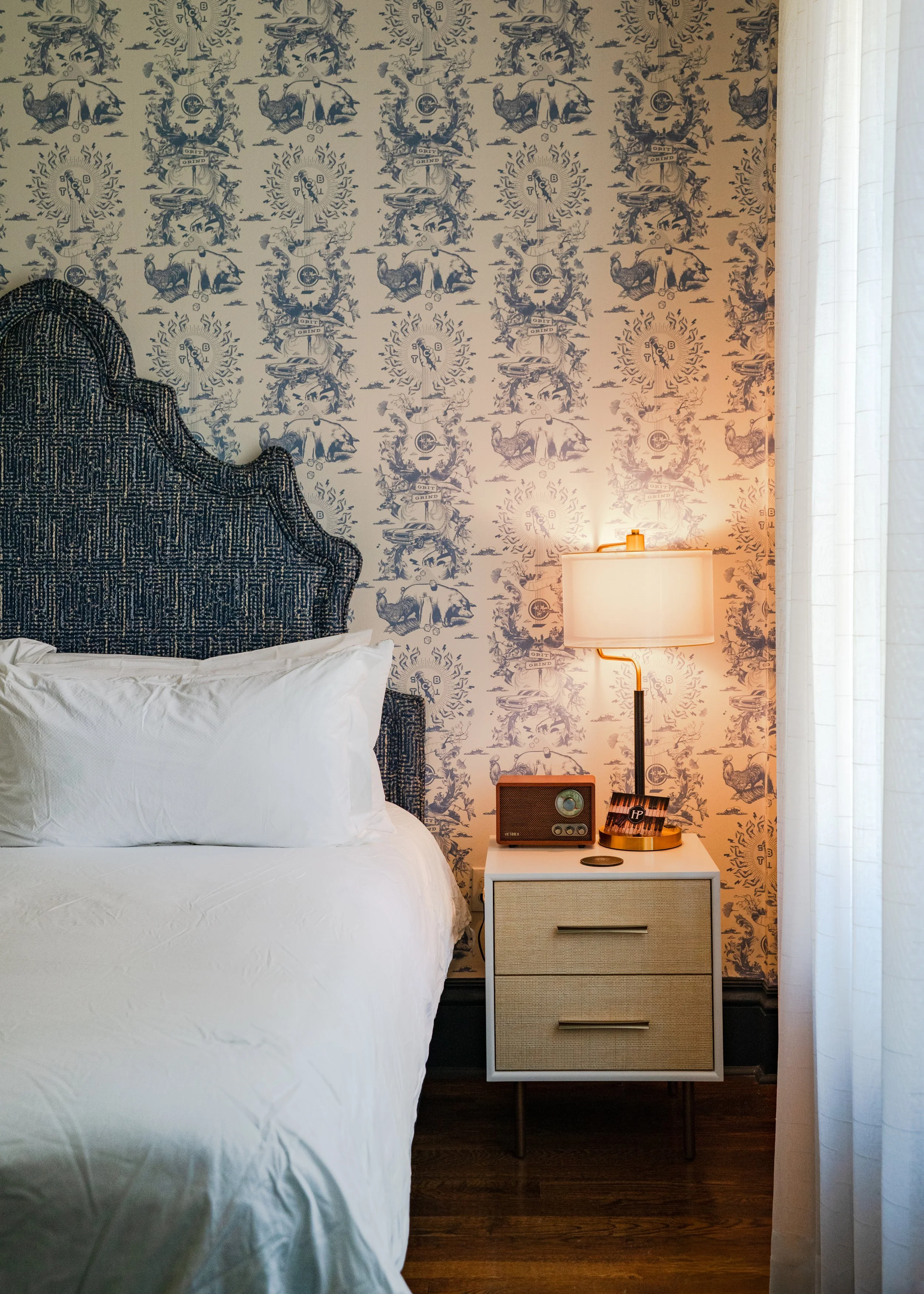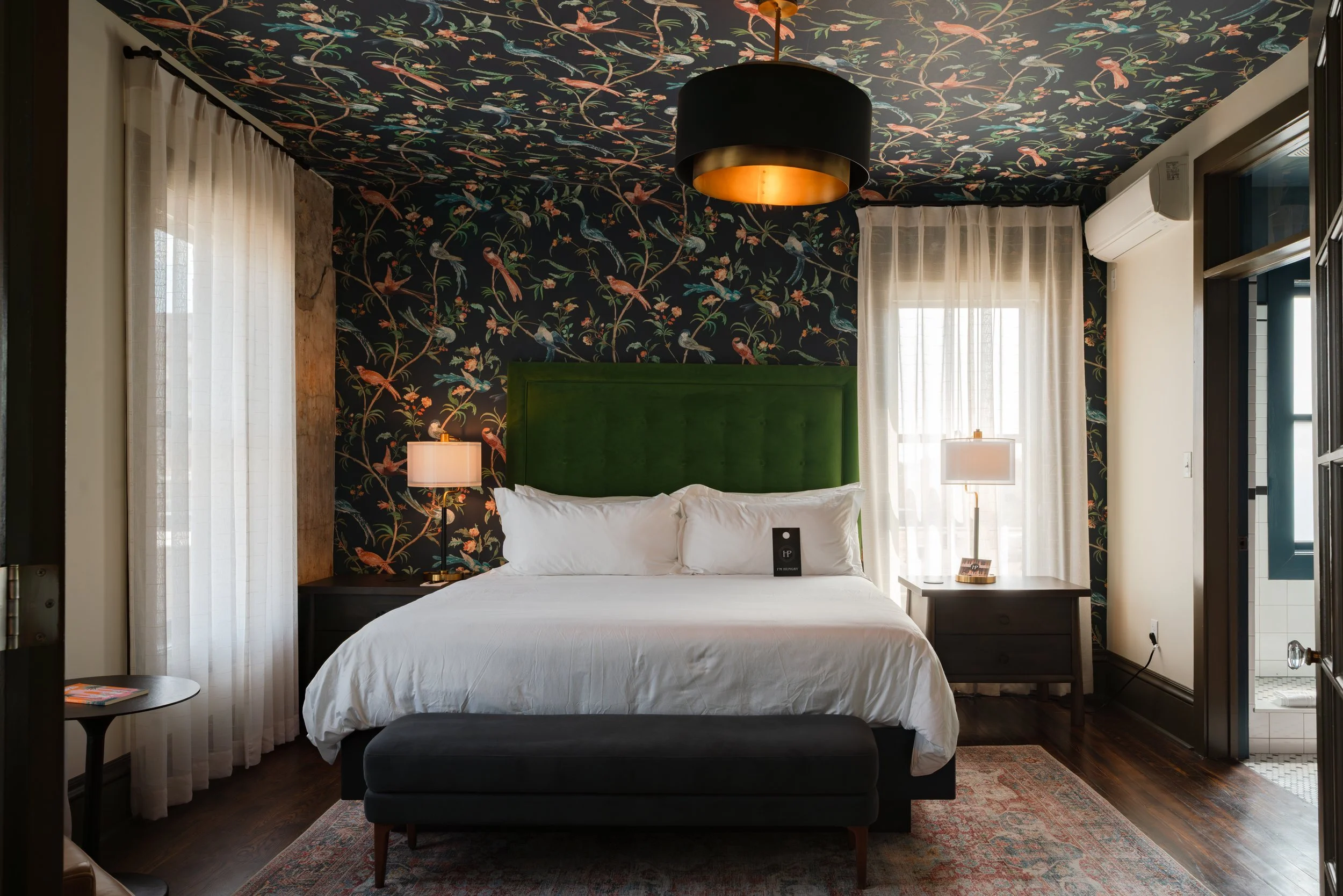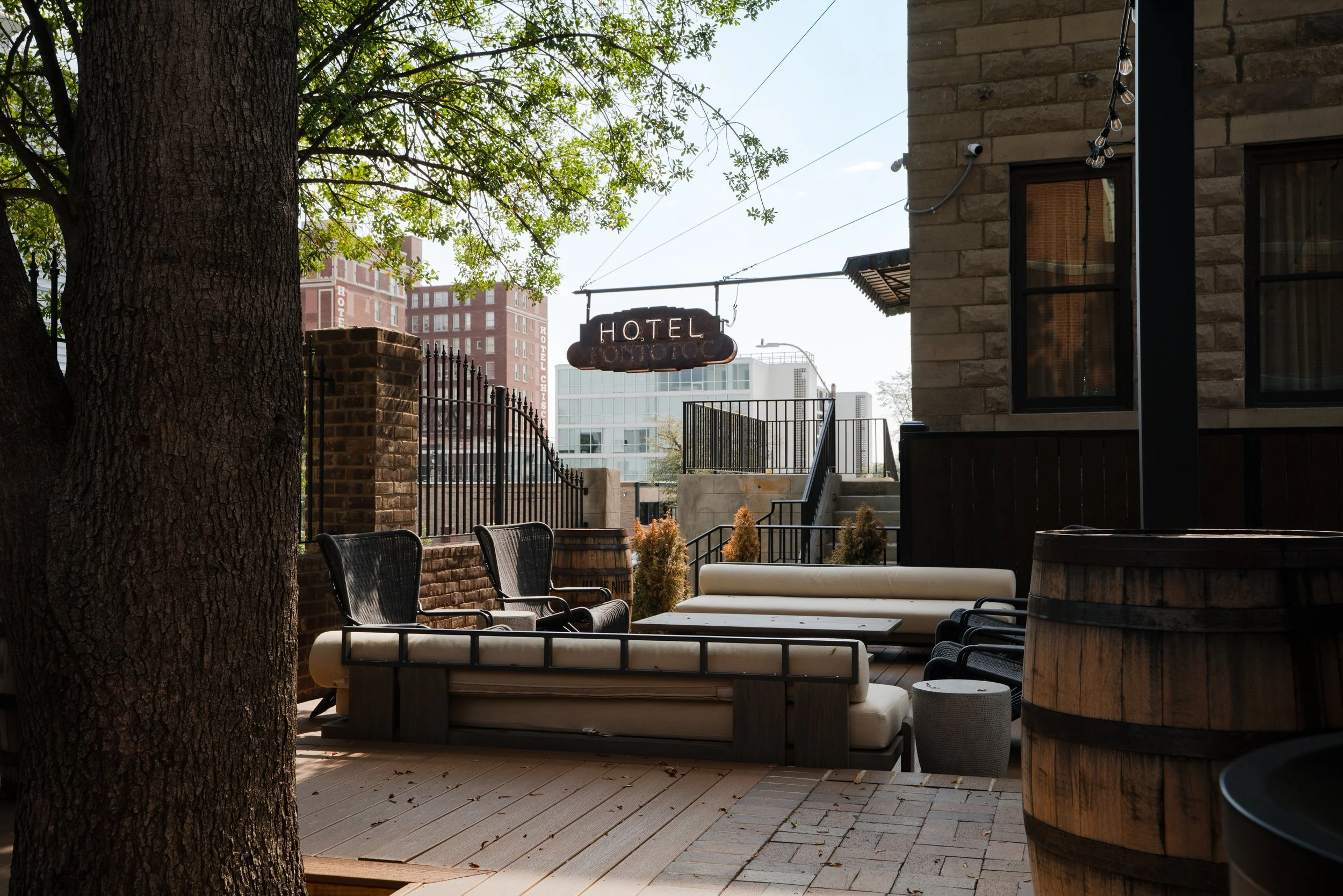 Built in 1906, The Pontotoc is a modest masonry building that quietly reflects early 20th‑century Memphis. Its stone‑and‑brick façade is unadorned yet solidly constructed, showing care in craftsmanship. Inside, much of the original character remains intact: carefully restored woodwork, exposed brick walls, and preserved period details that give the spaces texture and history. Over the years it has housed a social club and a bathhouse; today it operates as a boutique hotel that intentionally preserves and celebrates those accumulated layers. Ten individually furnished rooms thoughtfully blend original architectural features with modern comforts and conveniences. The Dame, the downstairs bar, conjures the feel of a dim, intimate speakeasy. The Pontotoc stands as an example of Memphis’s durable architecture and warm, local character.